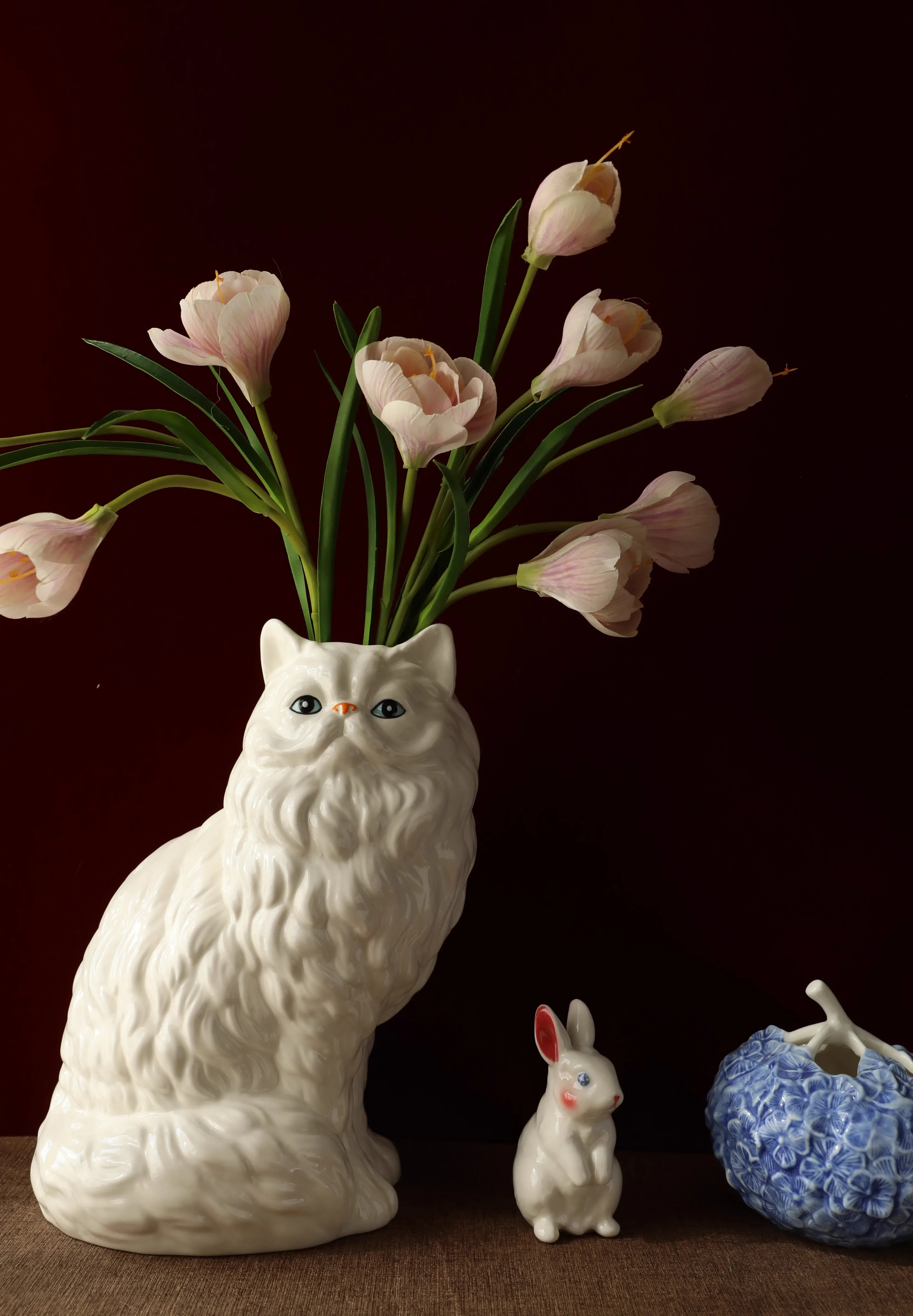 Cute White Cat Ceramic Vase Desk Decoration Flowers Arrangement Artificial Flower Decorative Floral Vases Room Aesthetic Decor