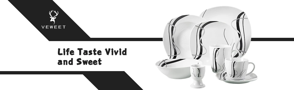 VEWEET is dedicated to providing high quality porcelain dinner service sest in everyday life.Combined with the classic coupe shape, a wide range of patterns has been developed by a team of designers.Not only visually beautiful, the exquisitely processed dinner service is also suitable for use with microwaves and dishwashers.Enjoy meeting and dining with your families and friends.Let it enrich your table and make the recipient happy!